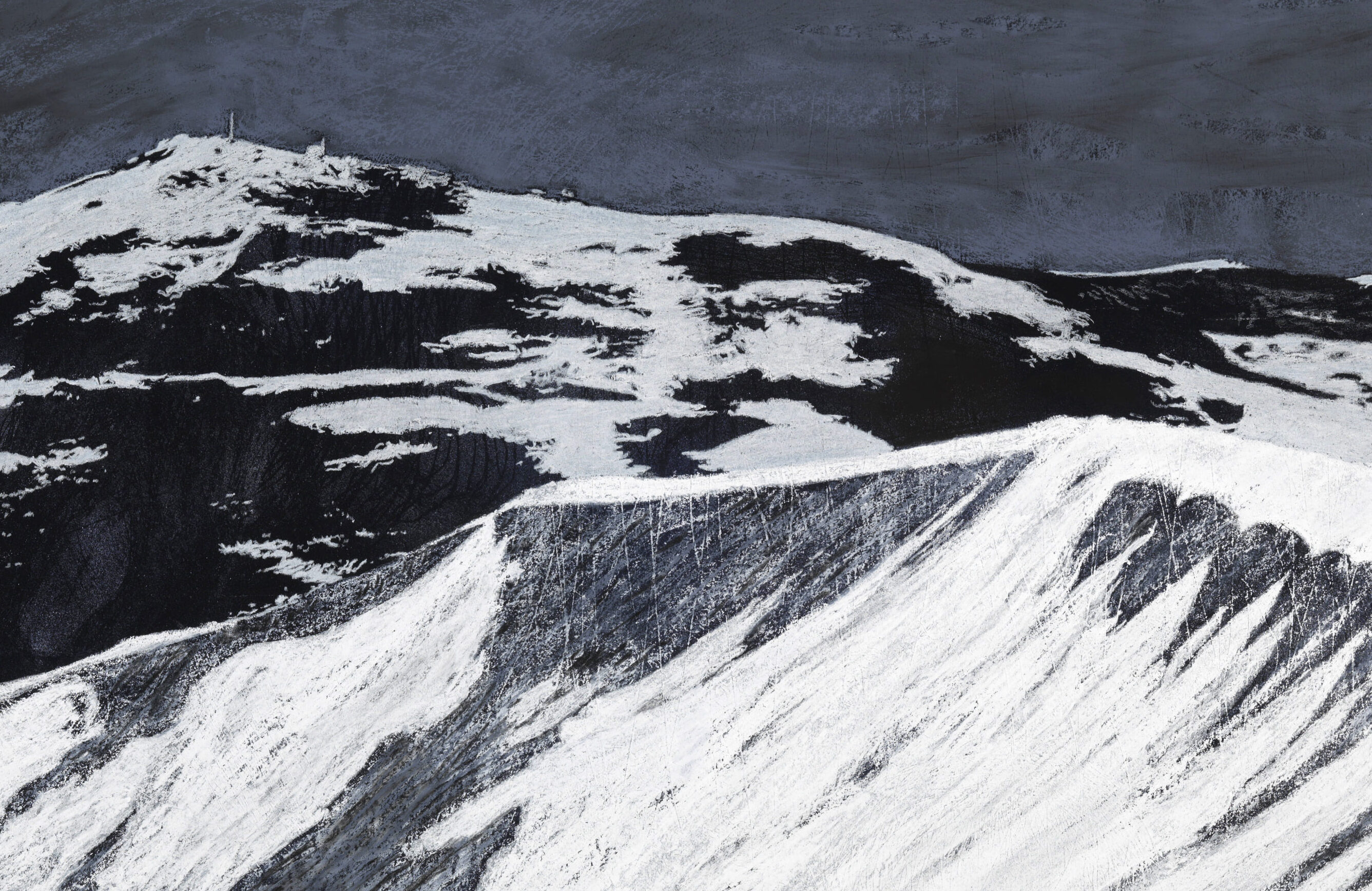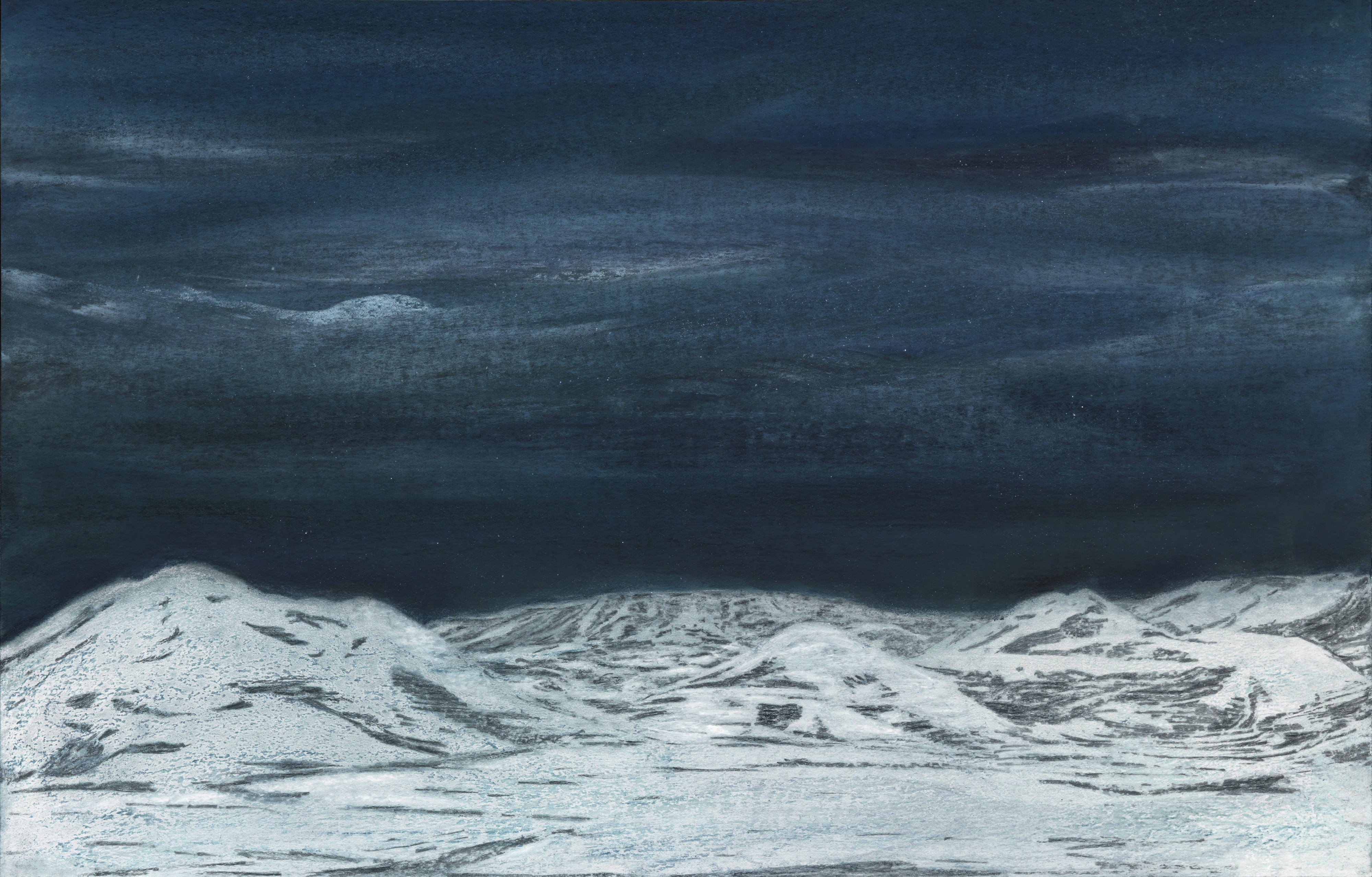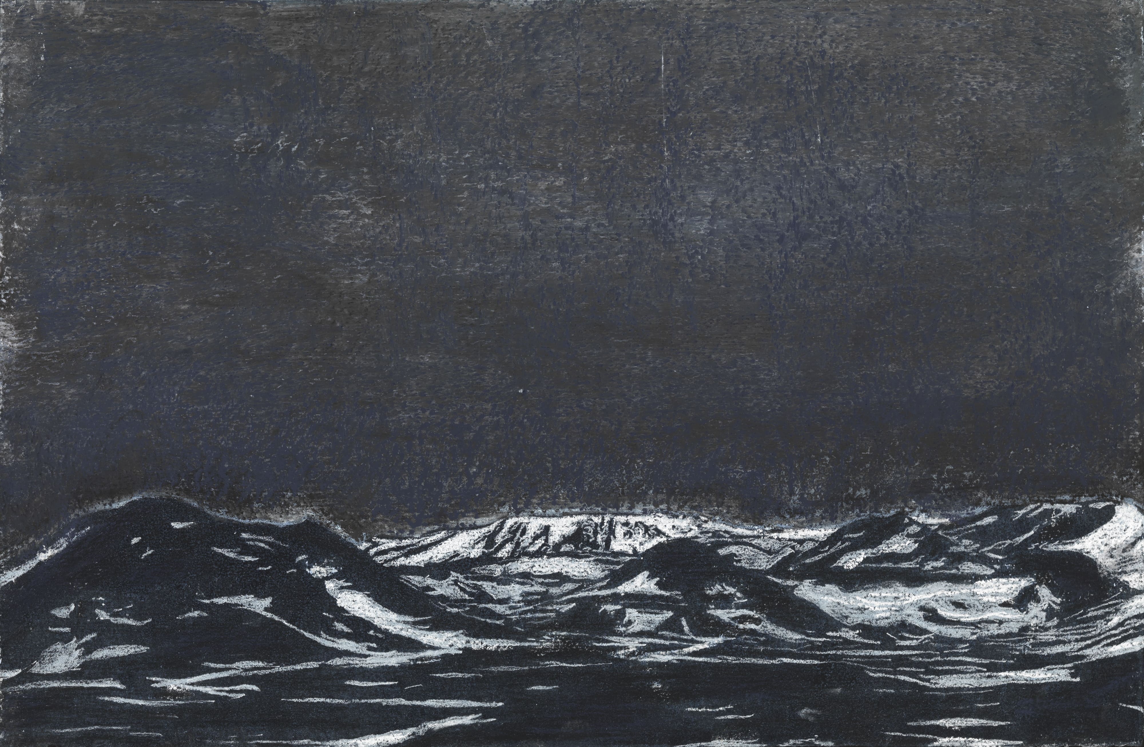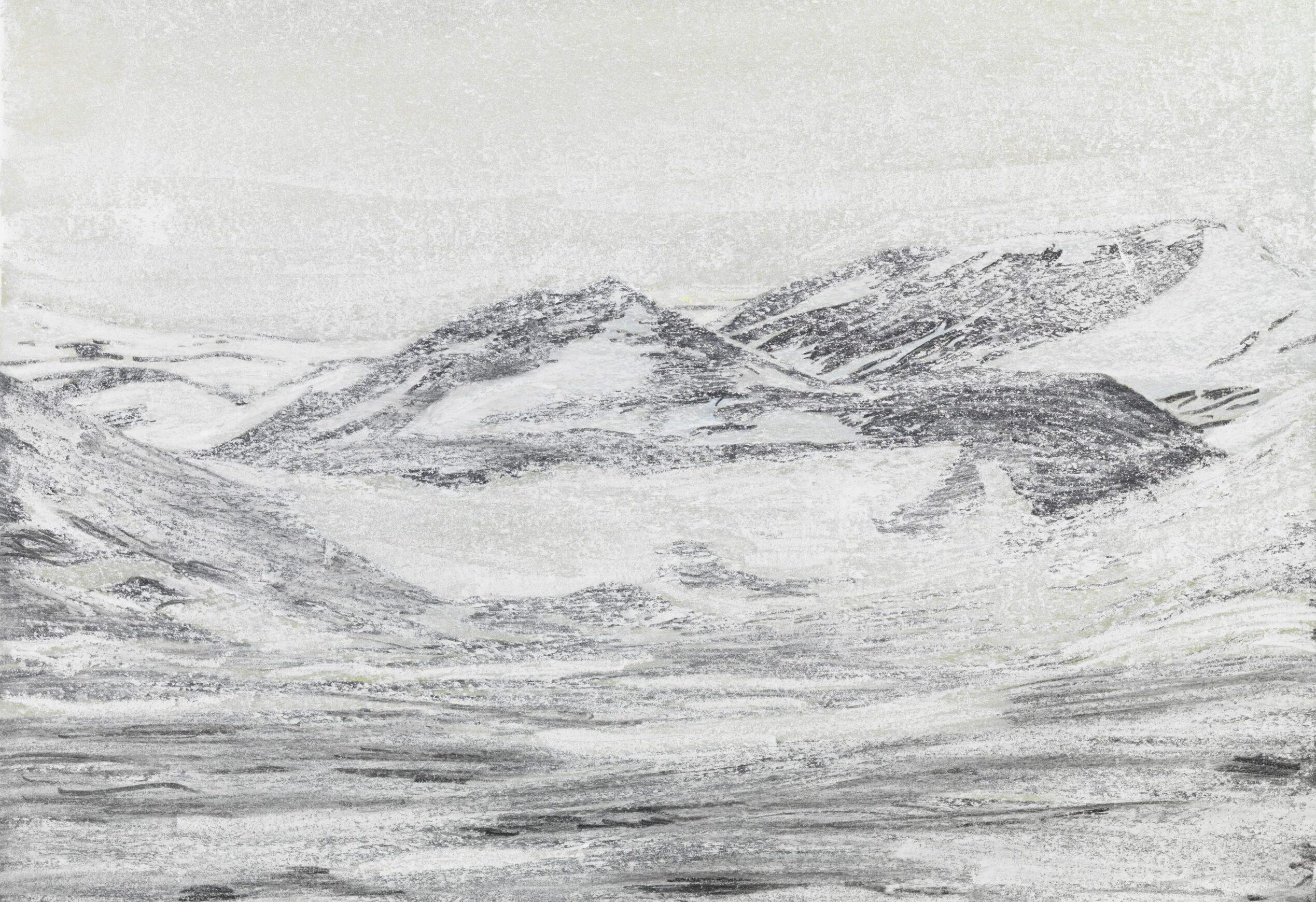 In May 2022, I had the opportunity to work for a month at the Fish Factory in Stöðvarfjörður in Iceland. An old fish factory, changed into artist studios, in a remote small village with 180 inhabitants on the Eastern fjords. I also travelled around for three weeks. It was a nice balance between traveling through the incredibly spectacular nature and a period of peace and quiet in the least crowded part of Iceland, where I could concentrate on my drawings. The weather could change radically in one day. The solid massive, ancient landscape could suddenly change into absence and emptiness.