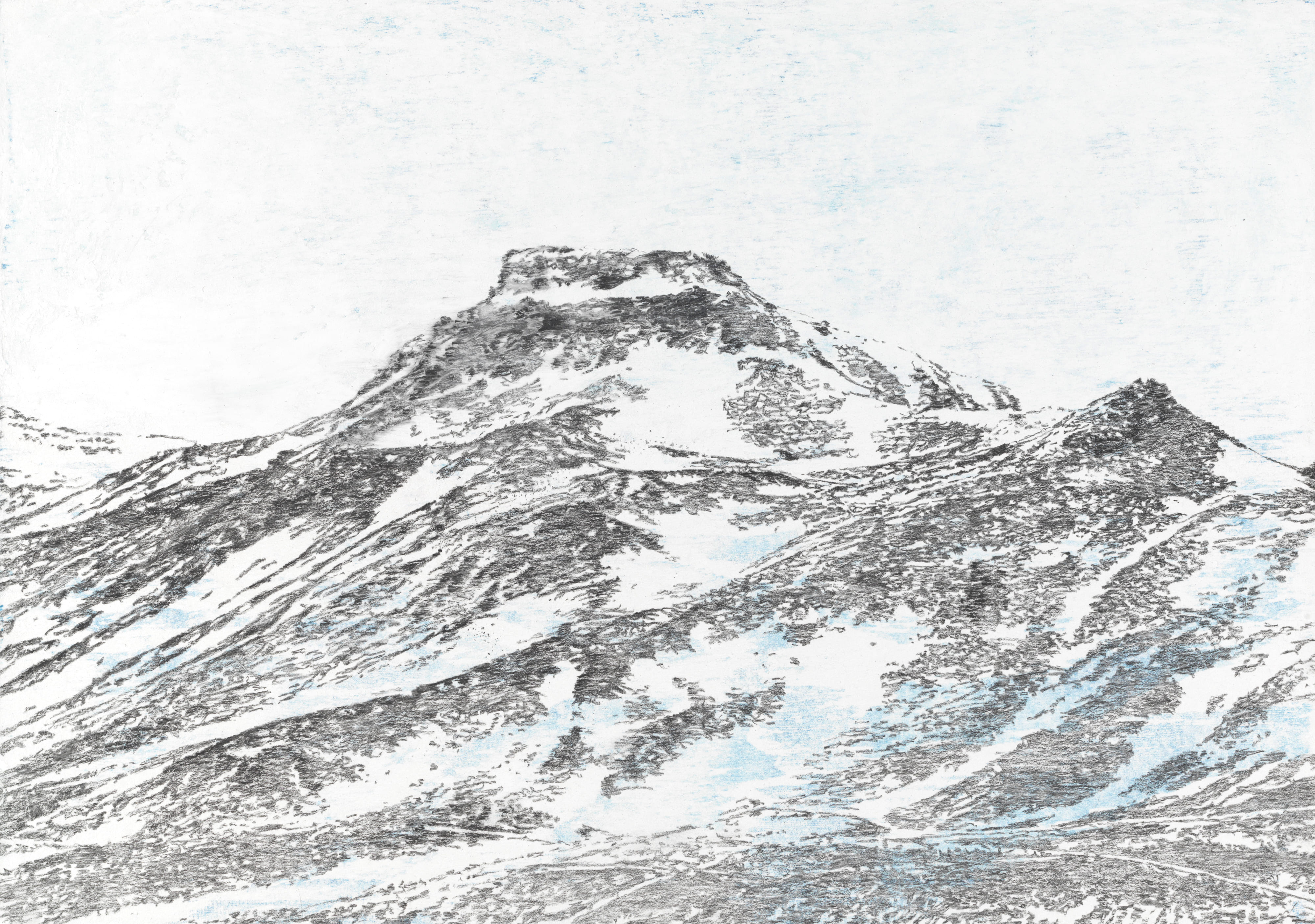 This project consisted of a one-month stay in March 2024 in an artist residency in Skagaströnd in the North of Iceland, near the polar circle. A tranquil and remote area. Where nature is still pristine and infinite, an almost uninhabited landscape. I thought to find silence but was surprised by and confronted with the extremities of the weather and the force of nature. The everyday presence of the weather (which wasn’t silent at all) was unexpected and gradually entered my drawings.